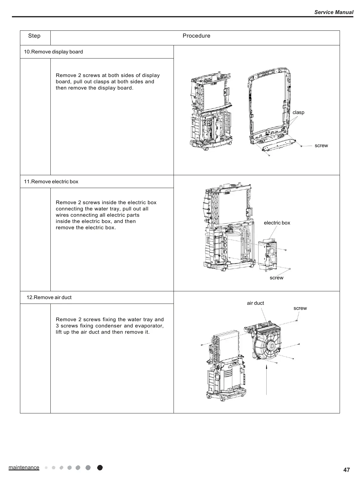 Remove 2 screws fixing the water tray and