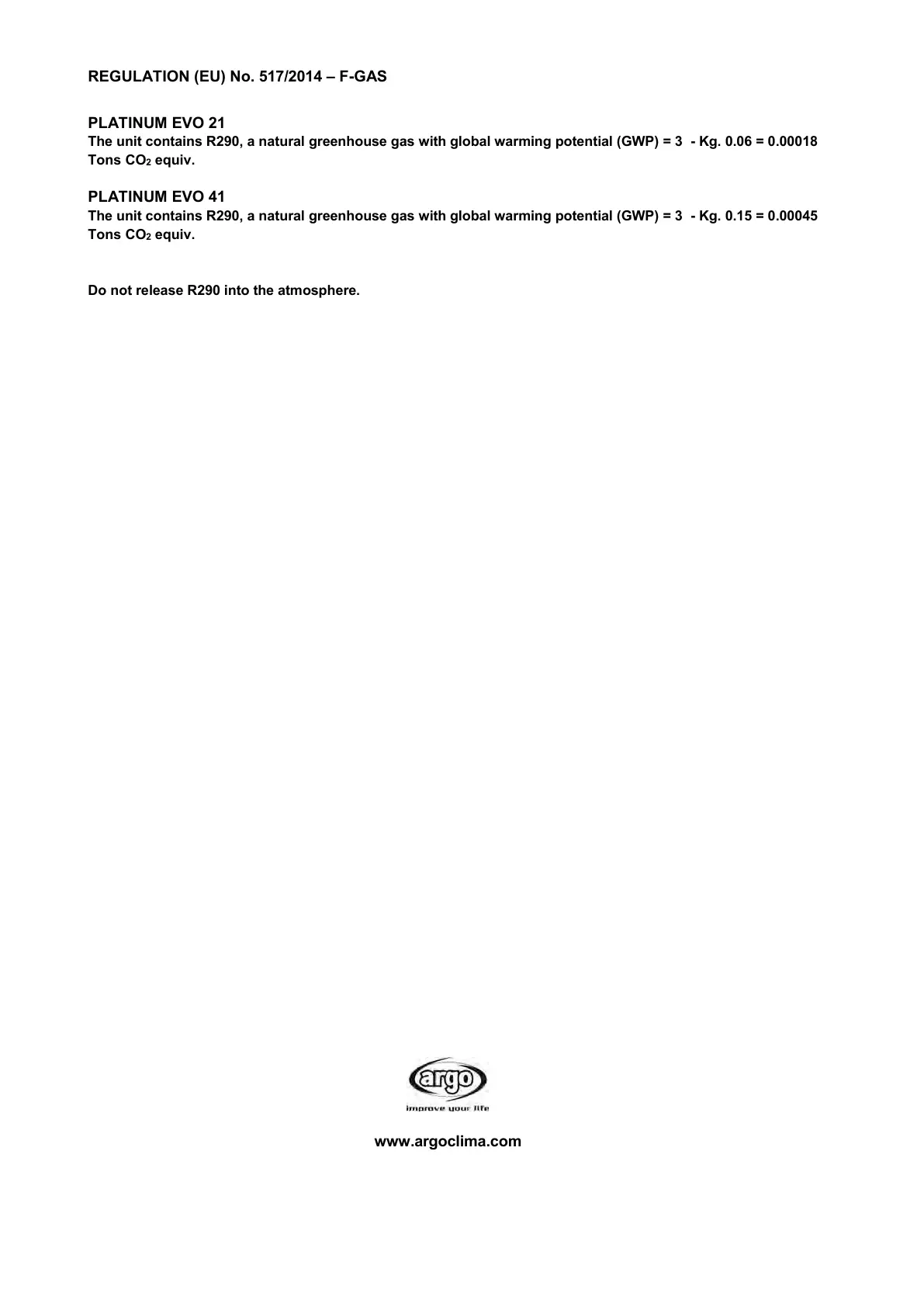 Do not release R290 into the atmosphere.