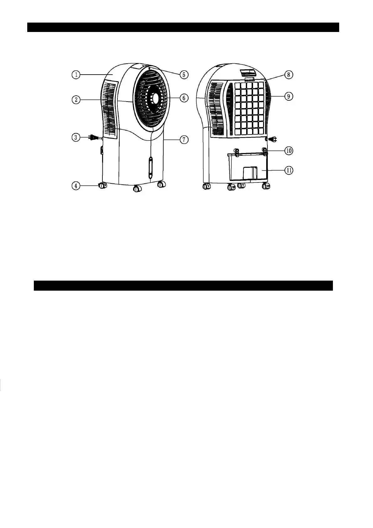 medium, high), both as a fan and as a cooler / humidifier: in this case, the rear tank must be filled with demineralized