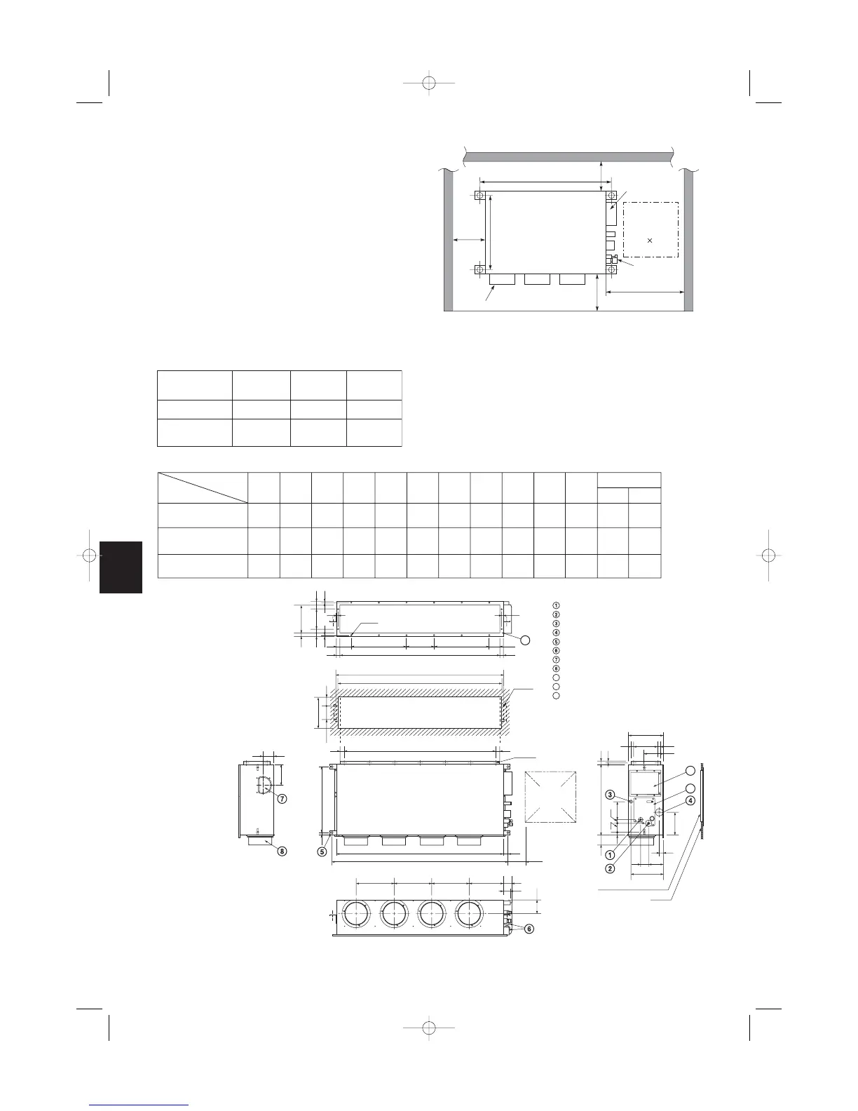 The minimum space for installation and service is