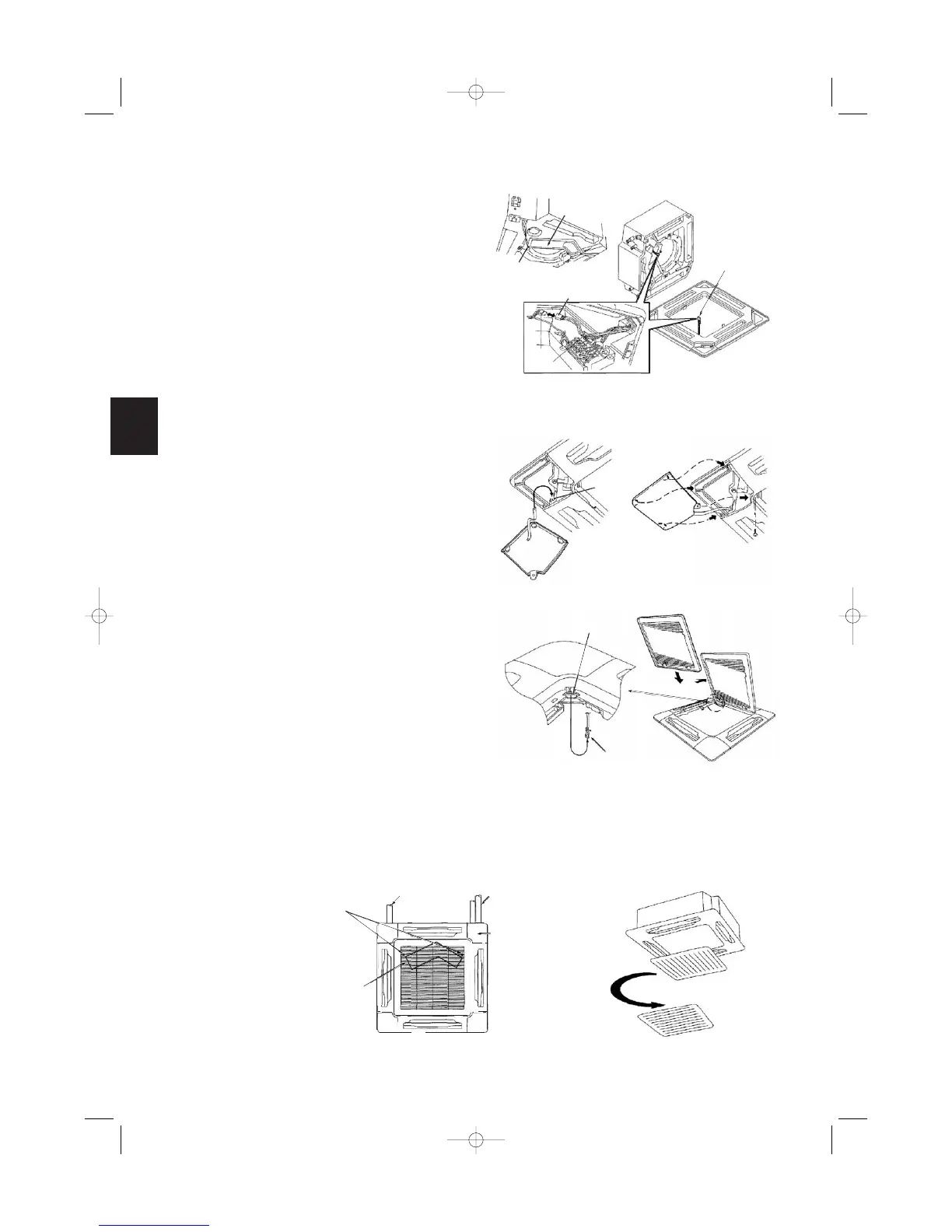 With this ceiling panel, the directions of the air-intake grille lattices when installing multiple units, and the position