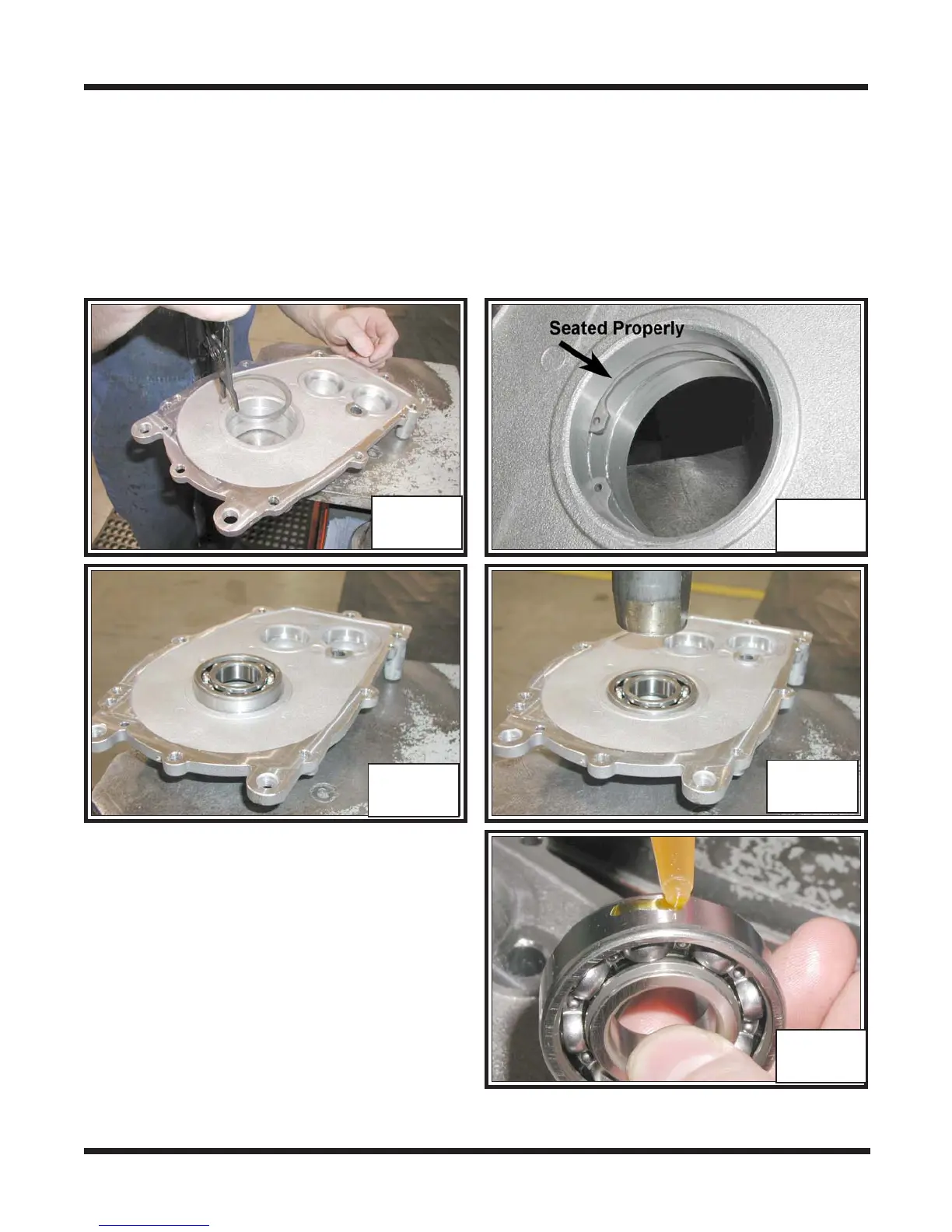 26. Install the Bearing into the Side Cover with the arbor press. Seat it to the previously