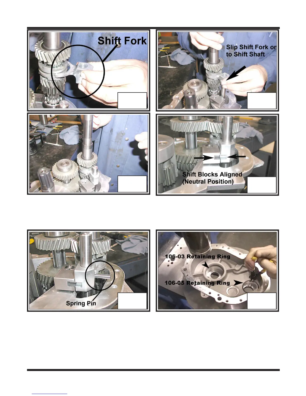 26. Secure the Hi/Lo Shift Fork to the Shift Shaft using a 104-39 Spring Pin.