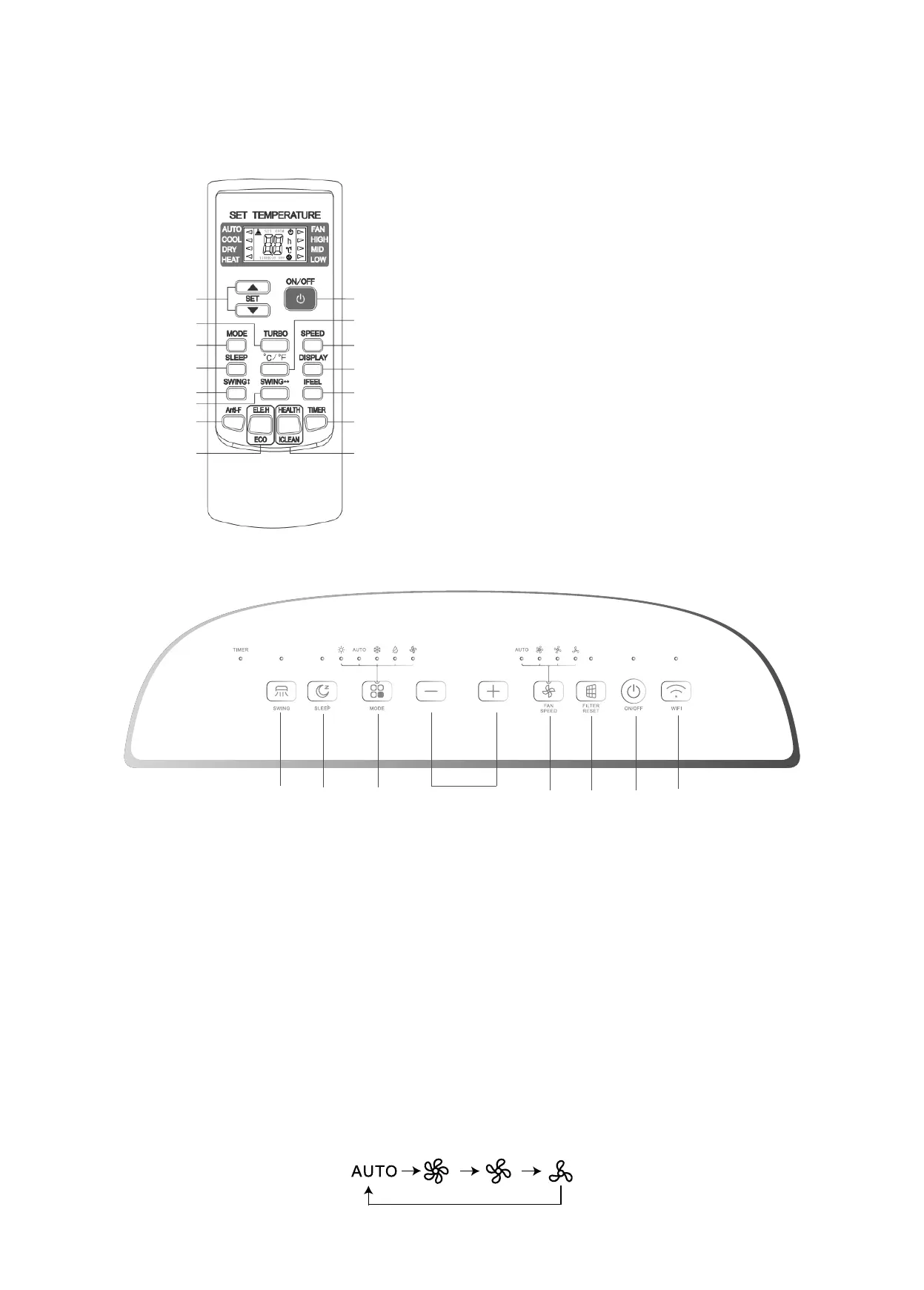 Appuyez sur ce bouton lorsque l’appareil est allumé pour régler la vitesse du ventilateur dans l’ordre circulaire