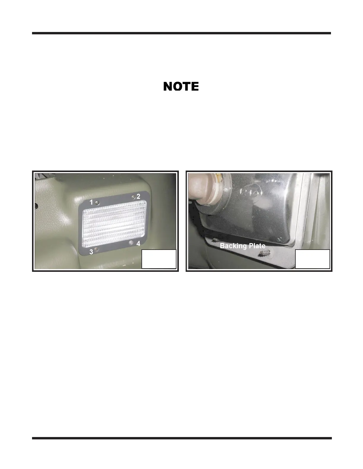 1. Install the headlamp from inside the vehicle, placing the inside backing plate over