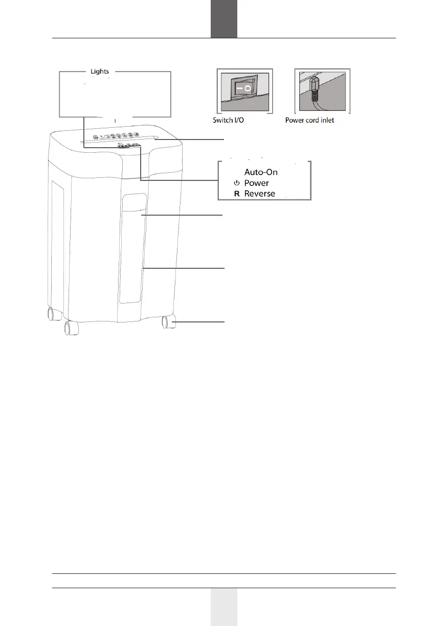 Overheat - lights up when the shredder is overloaded. Operation will resume on-