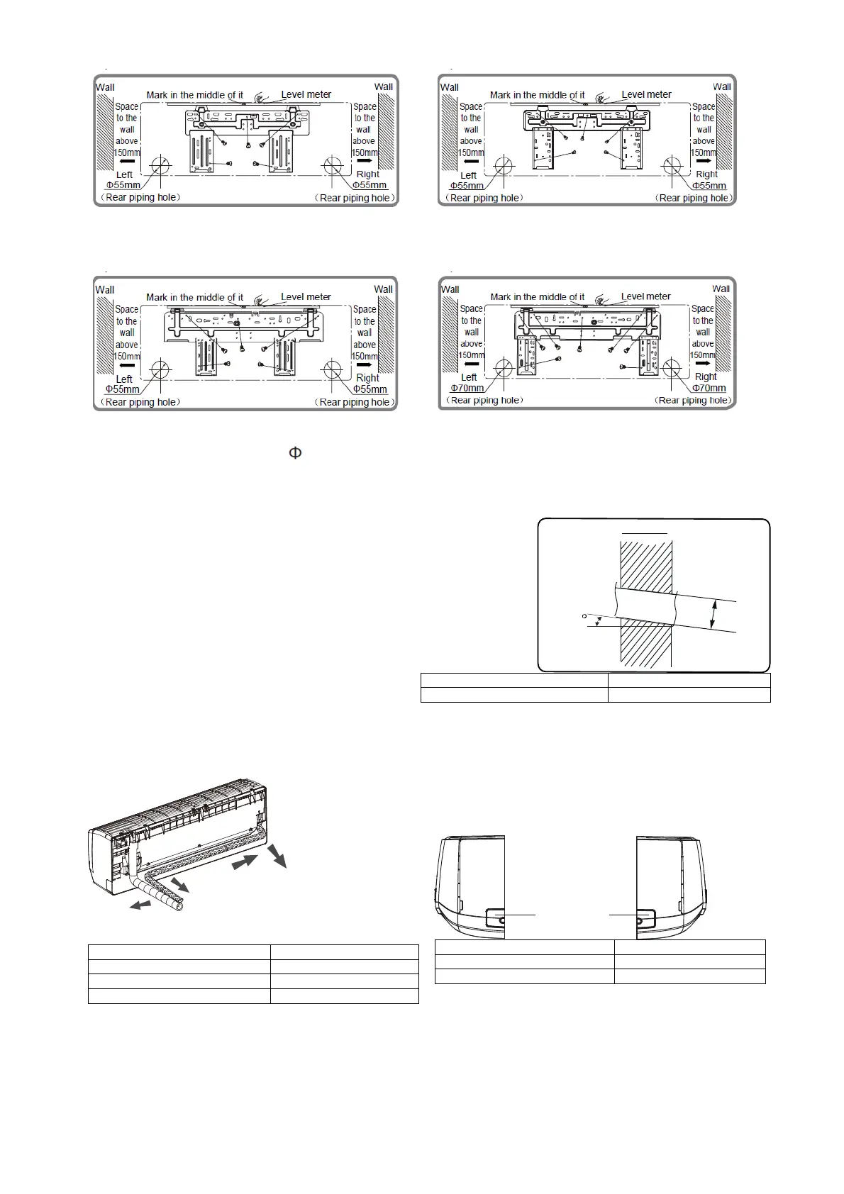 drainage, the piping hole in the wall must slant slightly downwards to the outdoor side, with a gradient