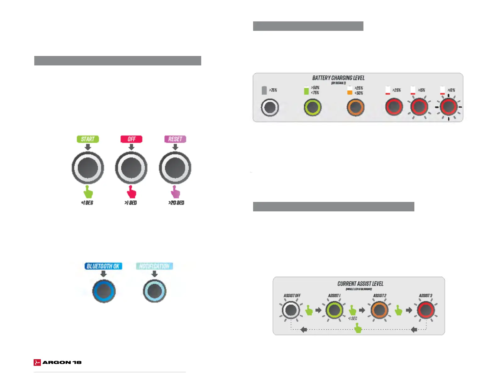 Assistance levels are indicated by blinking colour: no assistance is white, level one is