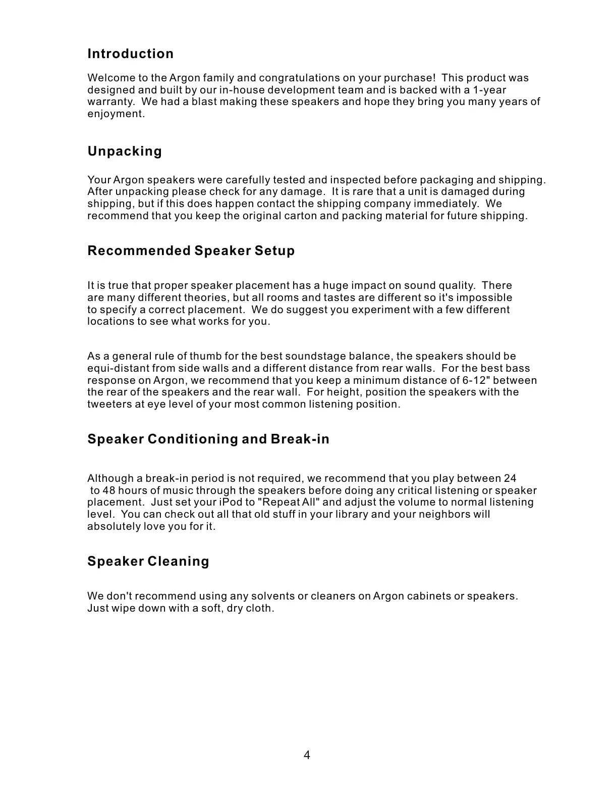 Your Argon speakers were carefully tested and inspected before packaging and shipping.