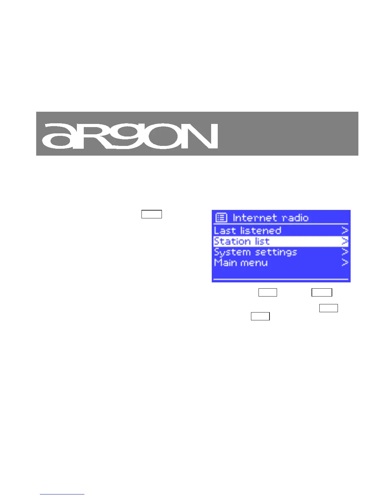 If you are already listening to an Internet radio station, you can press Back rather than Menu to