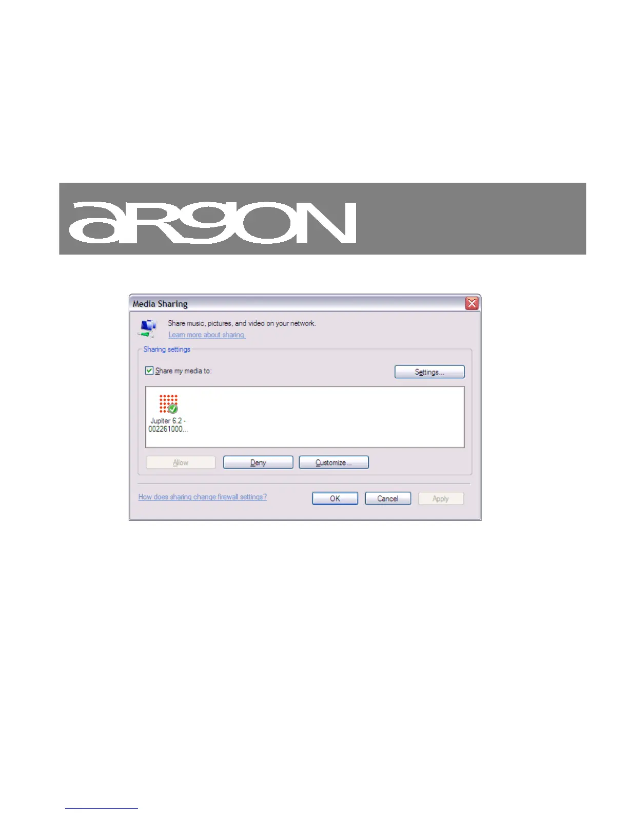 also set a name for the shared media in Settings… Click OK to close the dialogue boxes.
