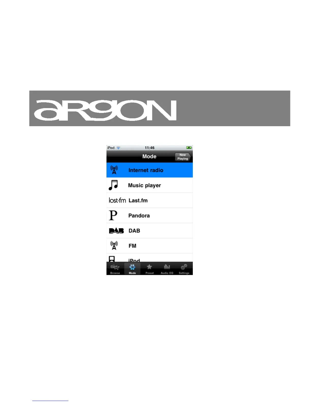 The Mode screen opens, showing the listening modes that are available on the radio: