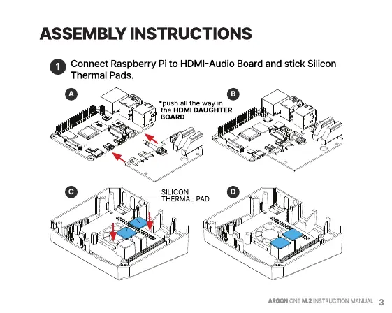 argon audio One M.2 - Argon ONE M.2 Assembly Instructions; Step 1: Connect Raspberry Pi and Thermal Pads
