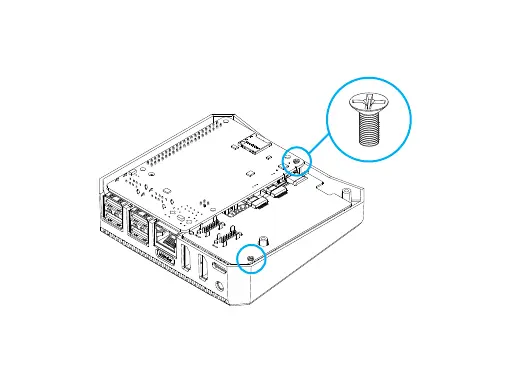 5. Use flat head screws to fasten Raspberry Pi® 5 and
