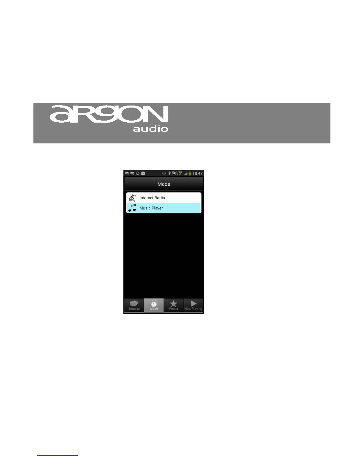 The Mode screen opens, showing the listening modes that are available on the Adapter.