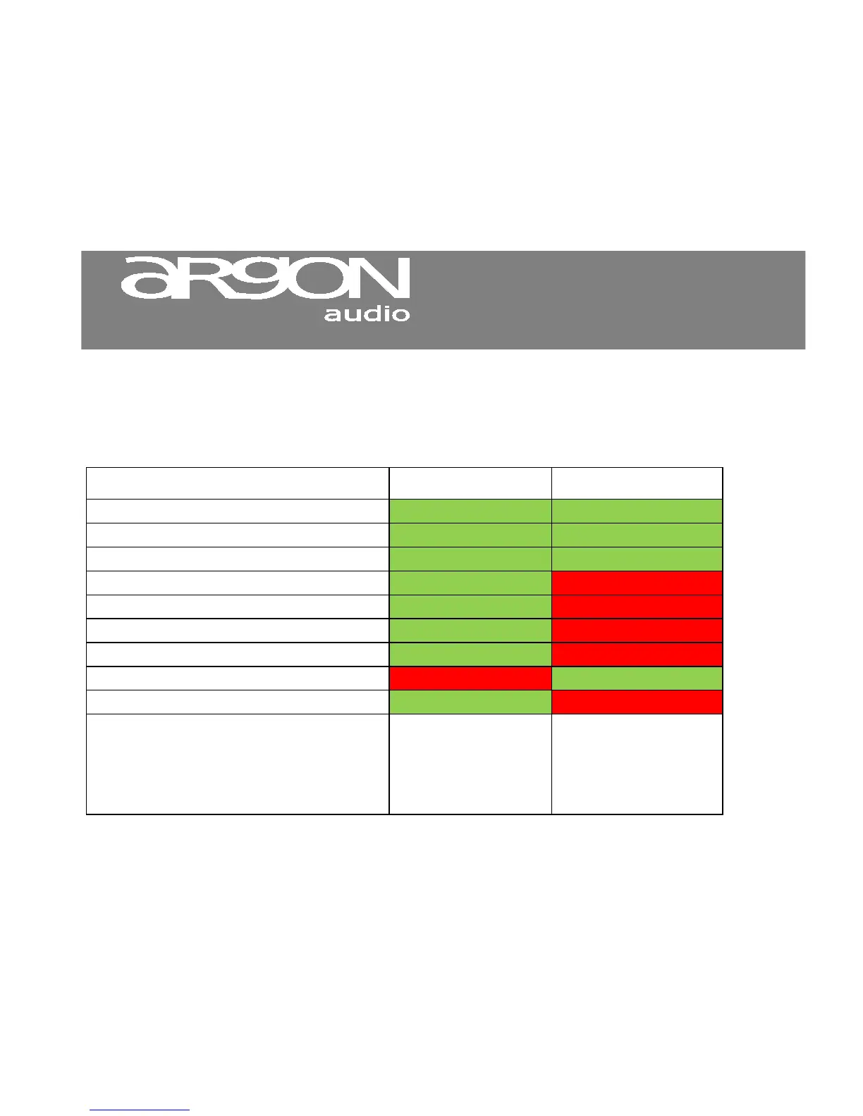 The following table provides a quick comparison of features available in the Argon Stream2 EUI