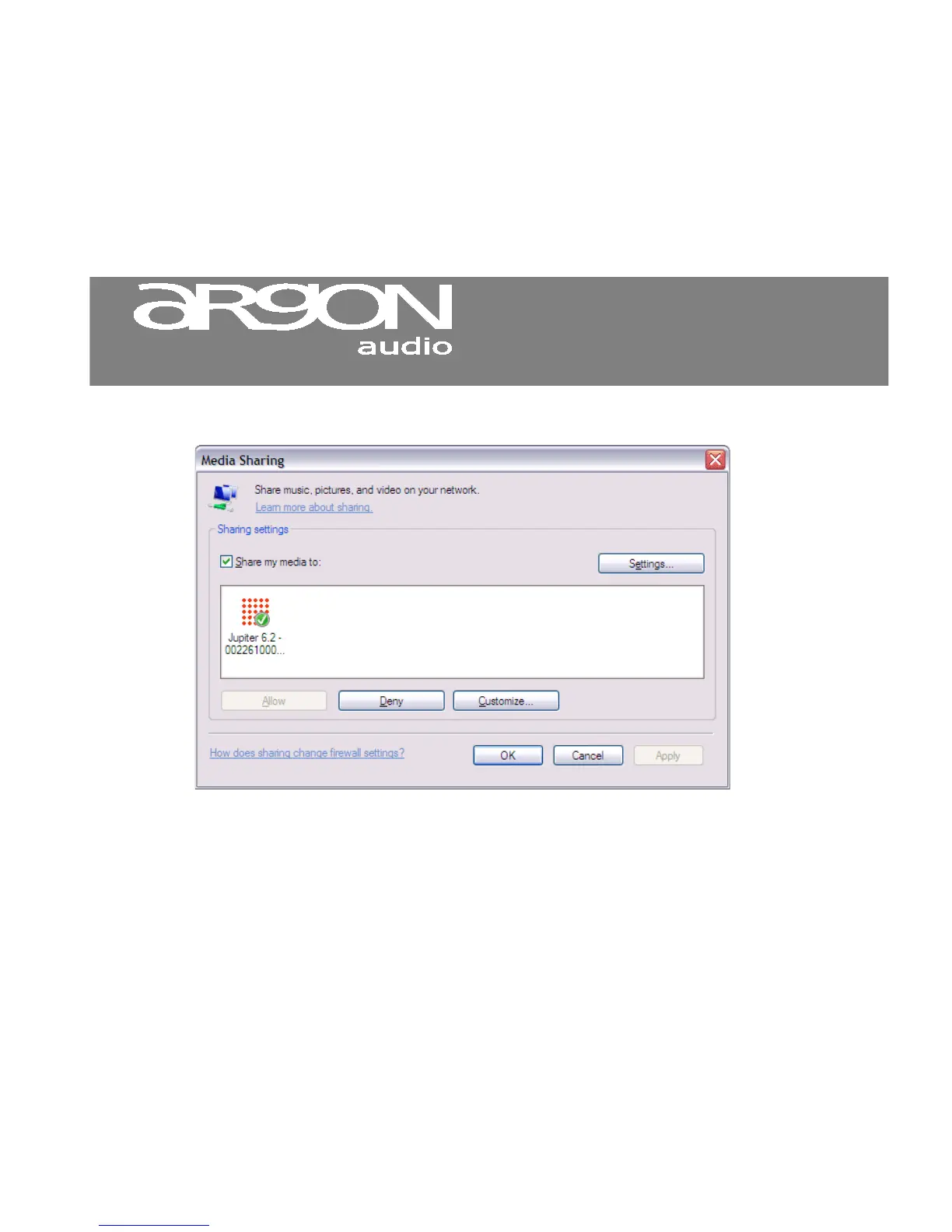 also set a name for the shared media in Settings… Click OK to close the dialogue boxes.