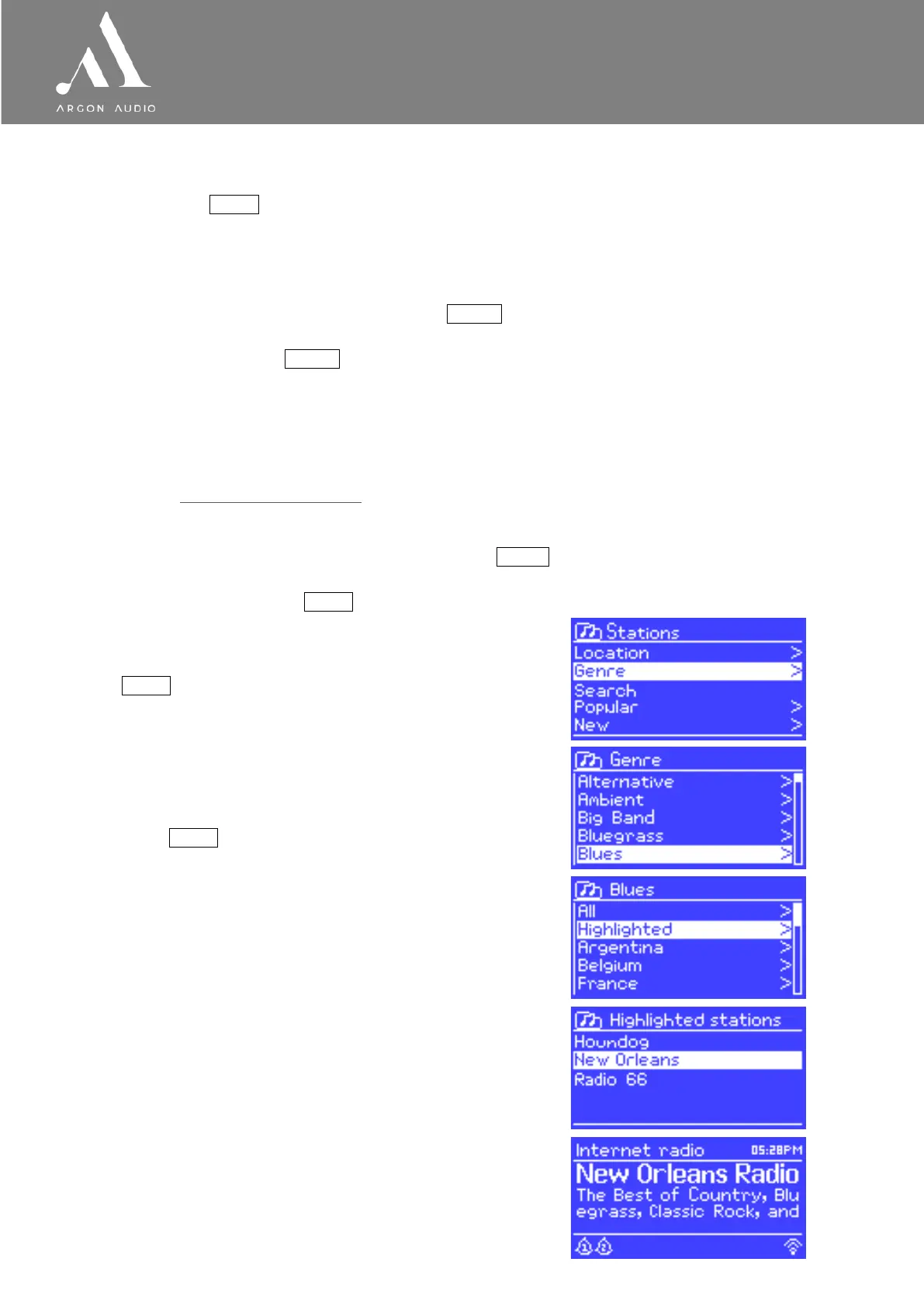 Note: Operation of presets is identical for Internet radio, DAB and FM.