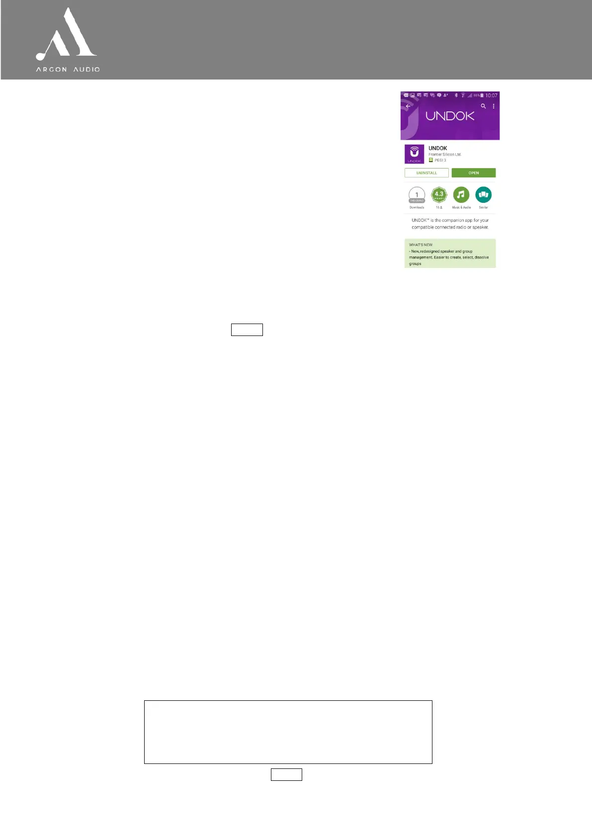 Notice: the feature: Set up audio system” in the UNDOK app only applies for Devices without display