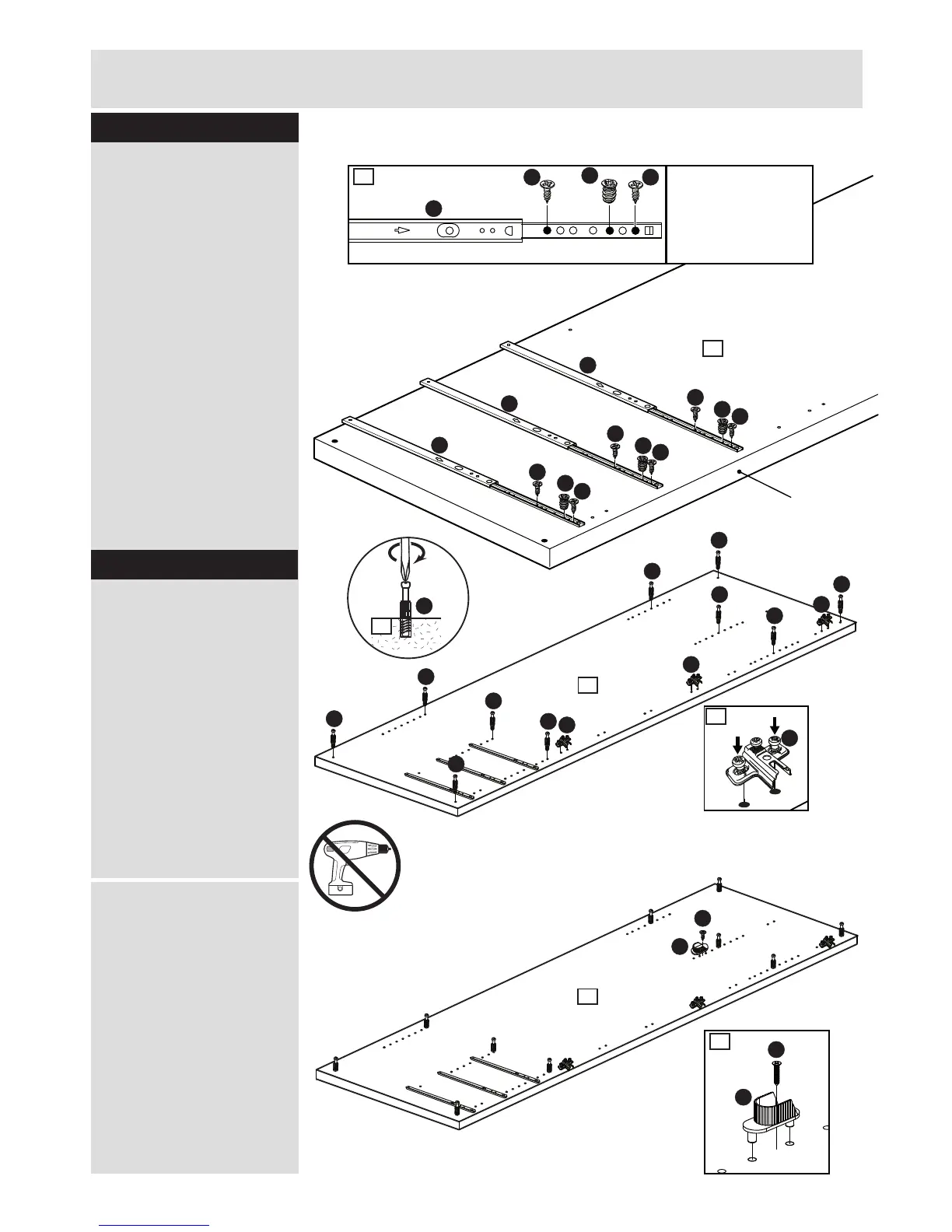 Warning: Do not use an electric screwdriver to attach the