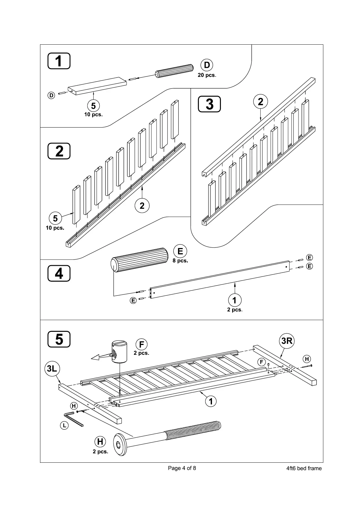 Argos 4FT6 BED FRAME - Step-by-Step Assembly Process; Step 1: Dowel Insertion (Slats); Step 2: Dowel Insertion (Headboard;Footboard); Step 3: Attach Slats to Headboards
