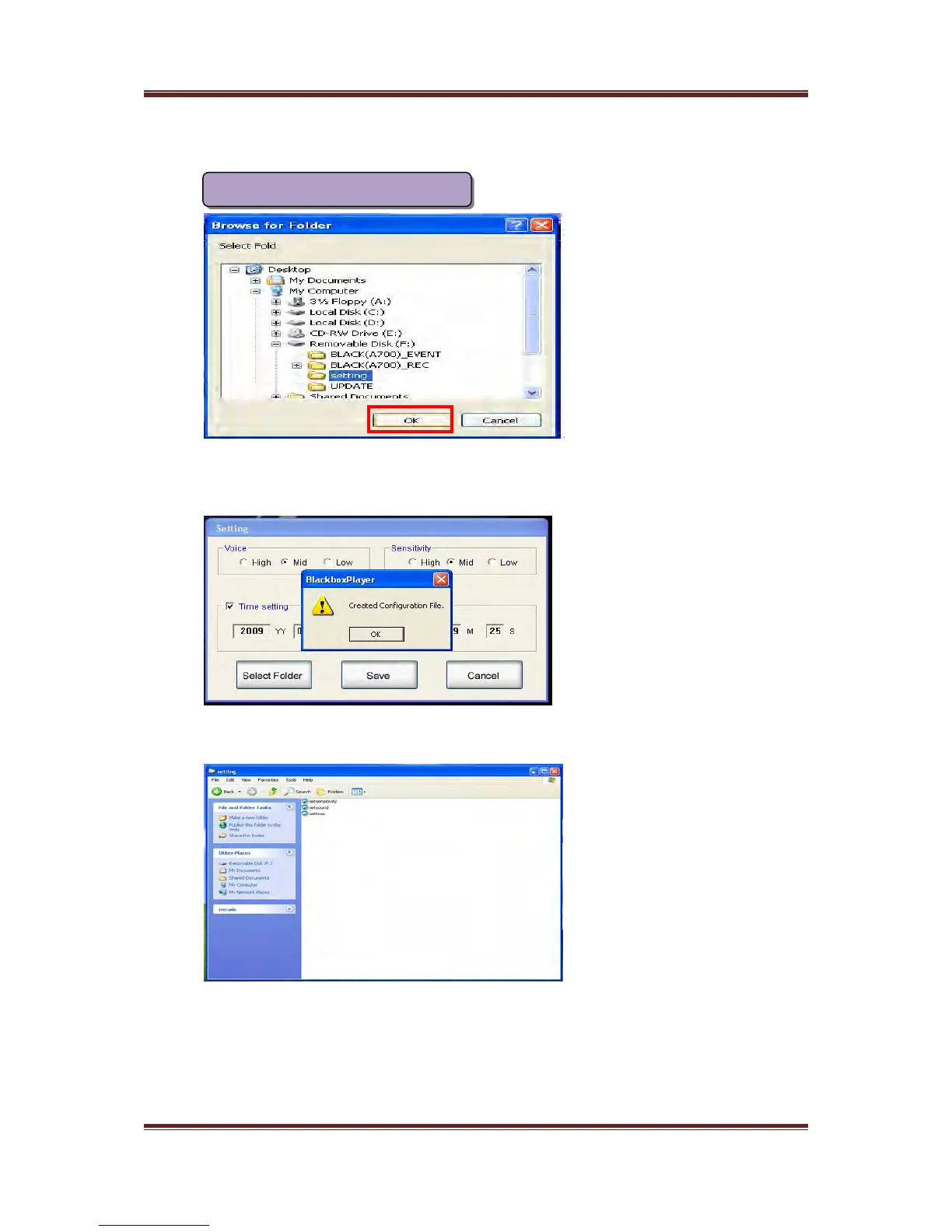 “Setting” folder in the SD memory card as like left window and click “OK” to store the