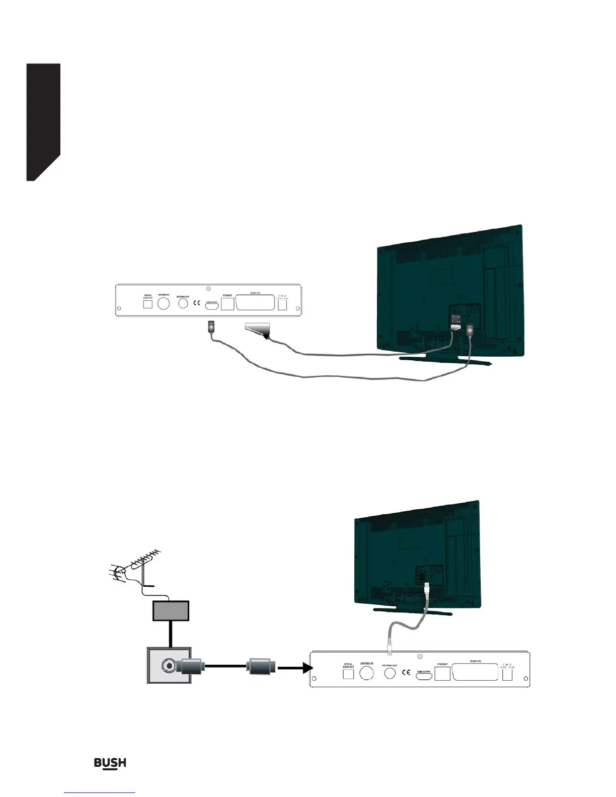 You can connect the set-top box to your TV by using the scart socket or HDMI input. Use a scart or HDMI cable to