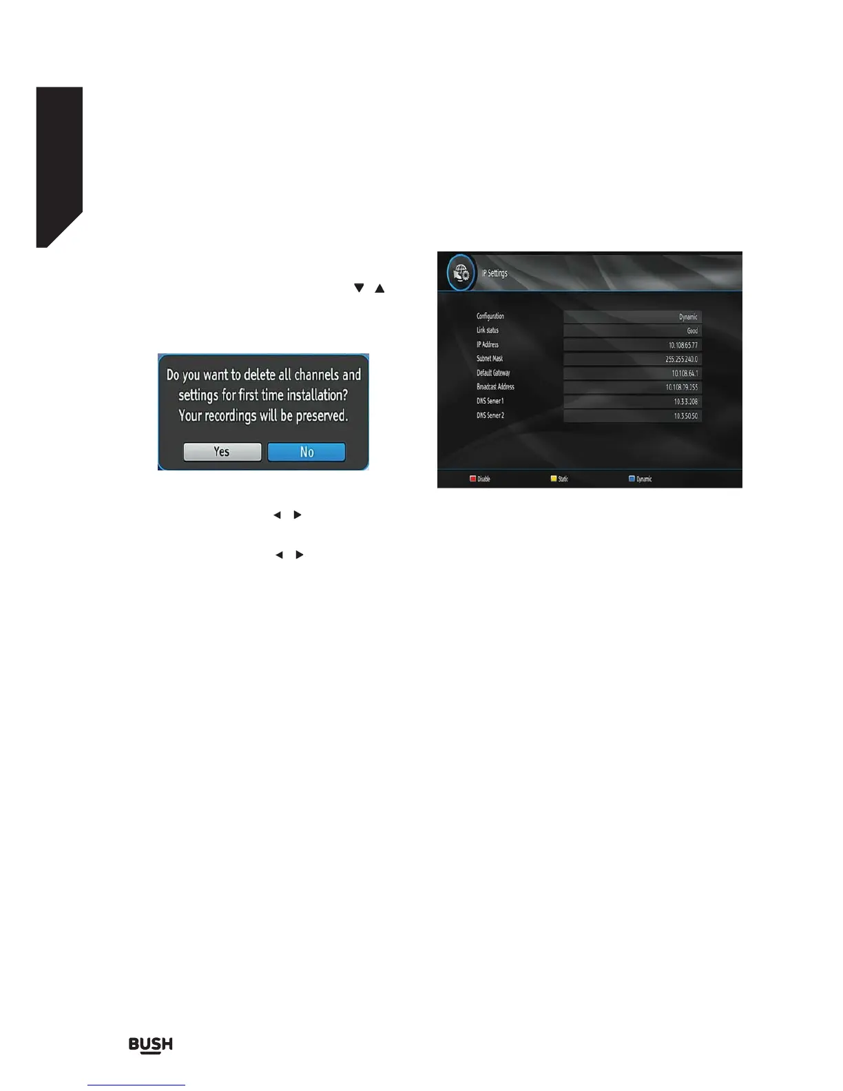 • Use the BLUE button to configure dynamic IP