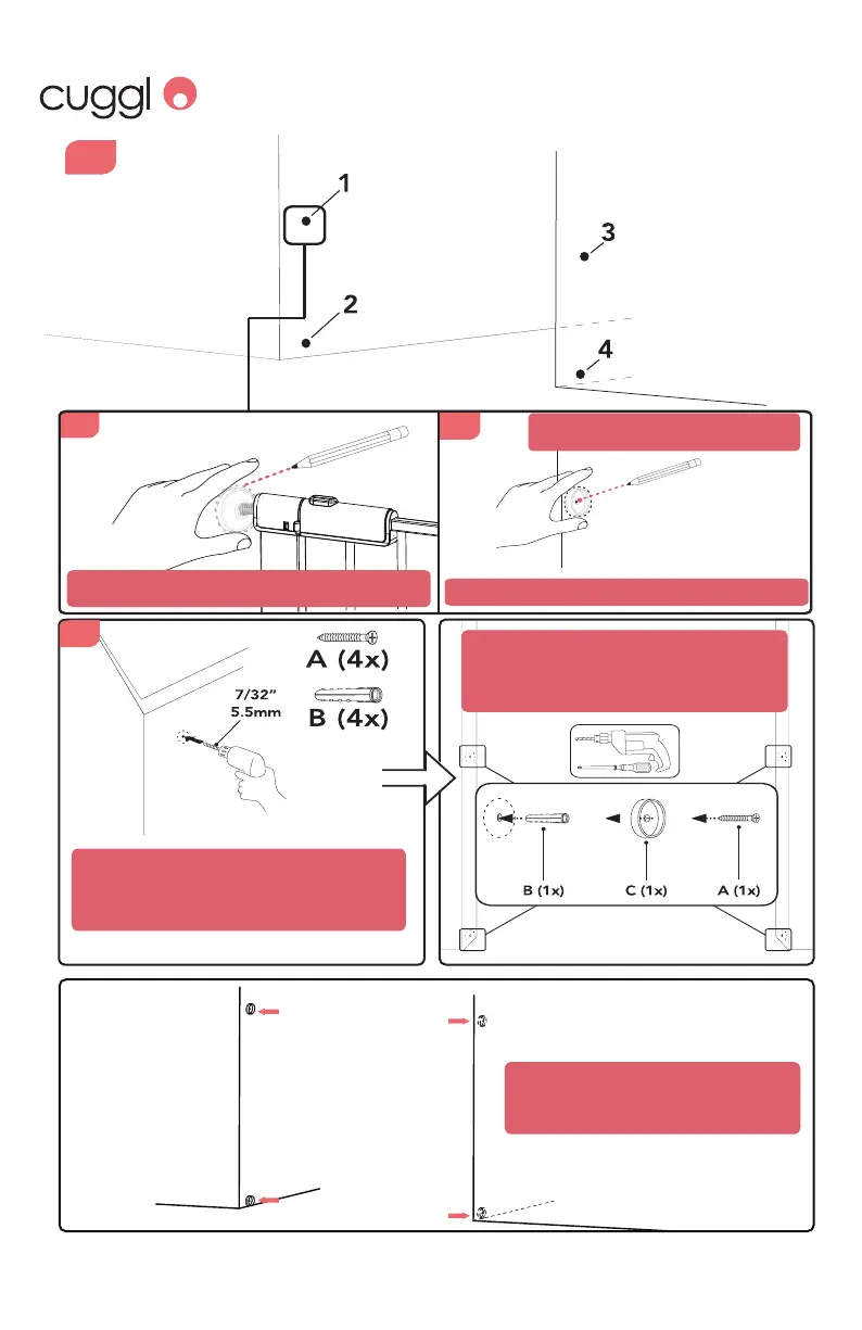 Secure the wall cups (C) in