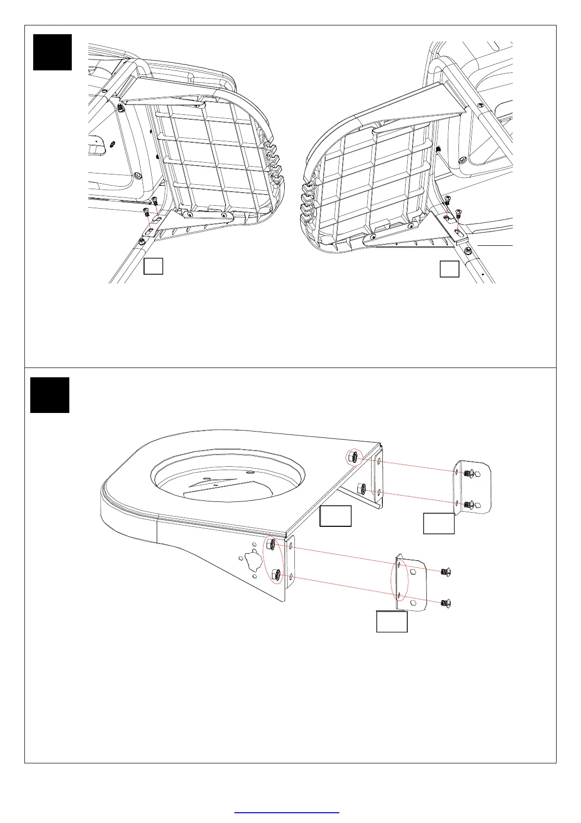Fix the side burner front support (D6) and side burner rear support (D7) to the side burner assembly (D1)