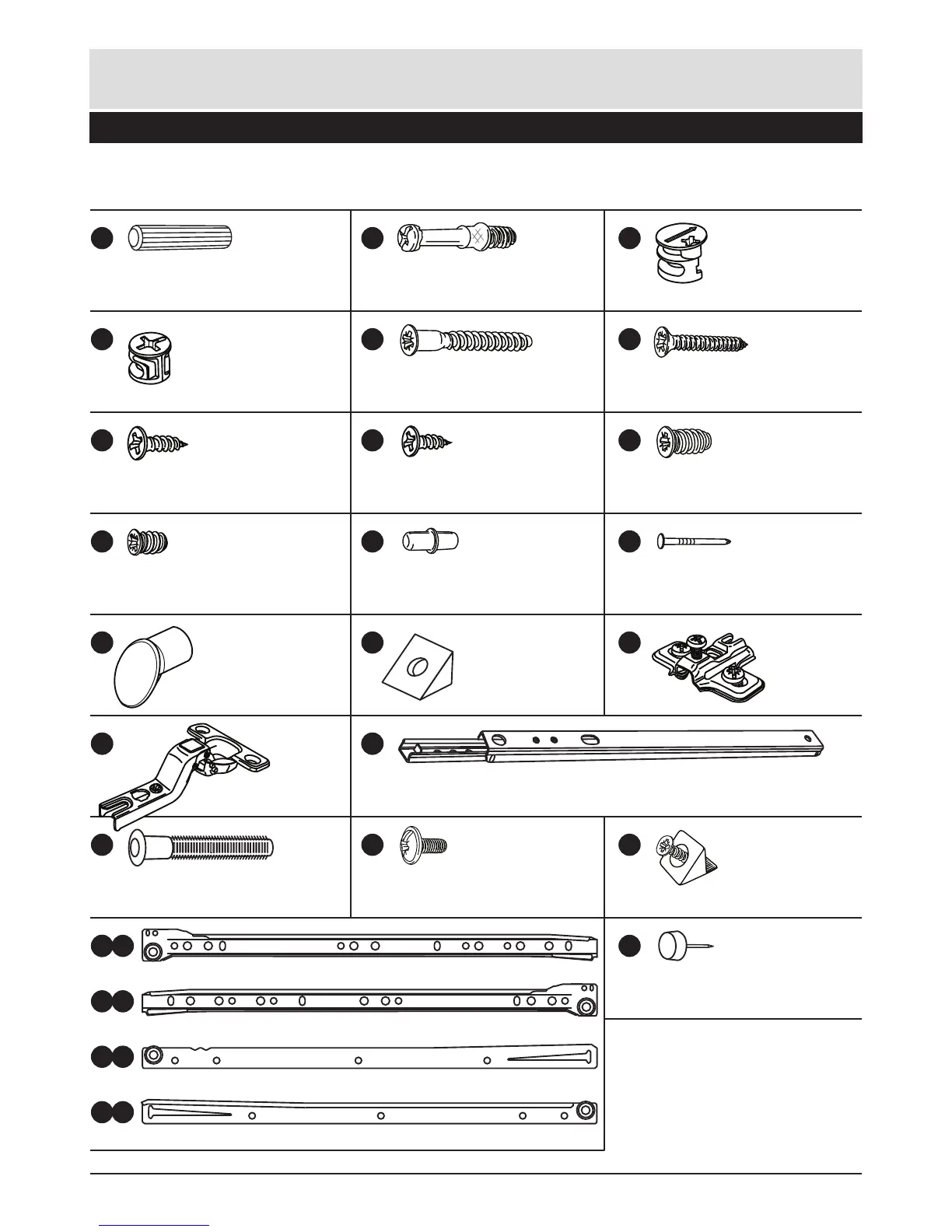 Note: The quantities below are the correct amount to complete the assembly. In some cases