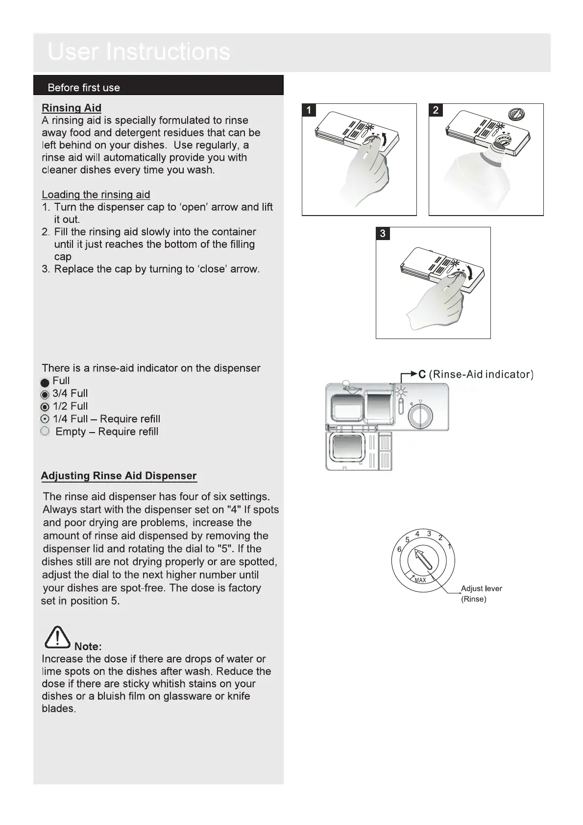 Argos ProAction - User Instructions: Rinse Aid System; Rinse Aid Dispenser Operation; Adjusting Rinse Aid Dosage