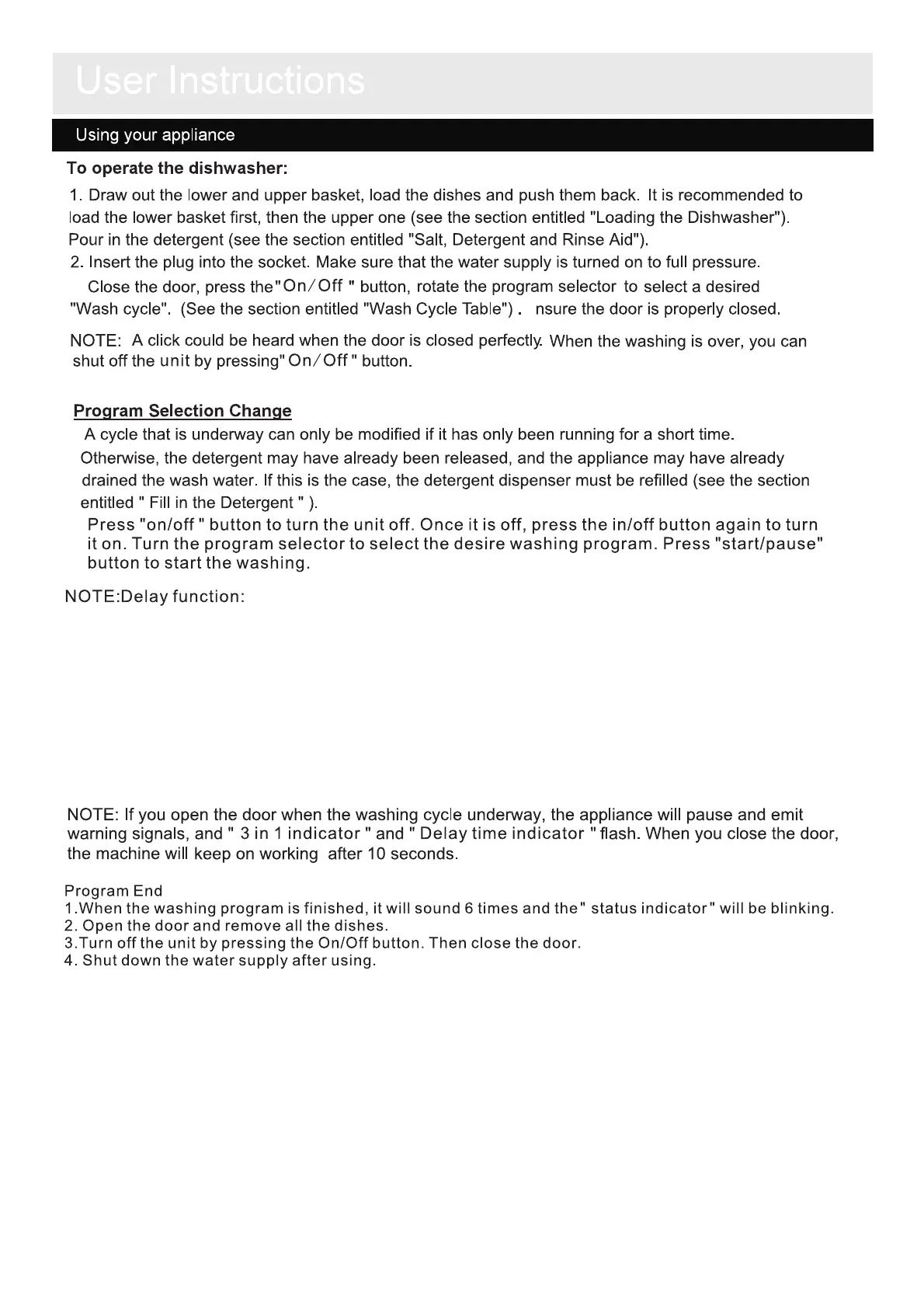 This function will allow you to delay the start time of the washing program up to 3, 6 or 9 hours.