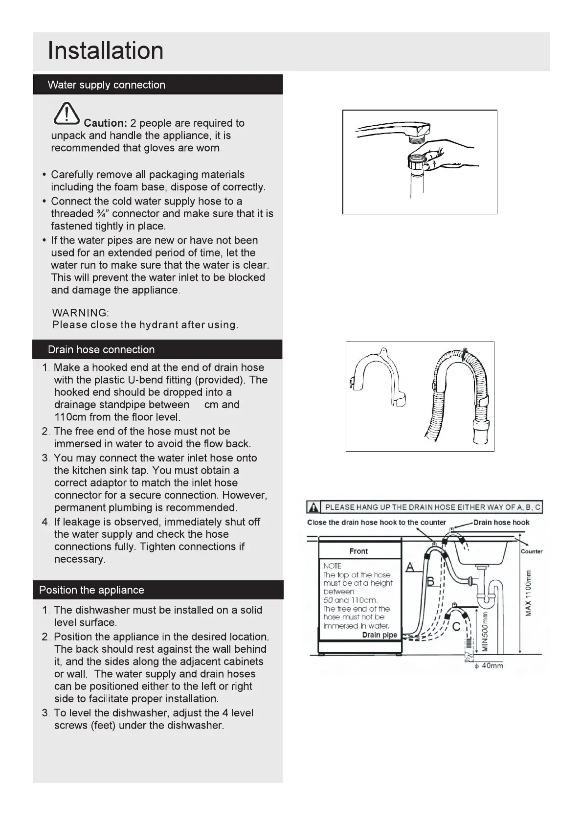 Argos ProAction - Installation Procedures; Water Supply and Drainage; Appliance Positioning