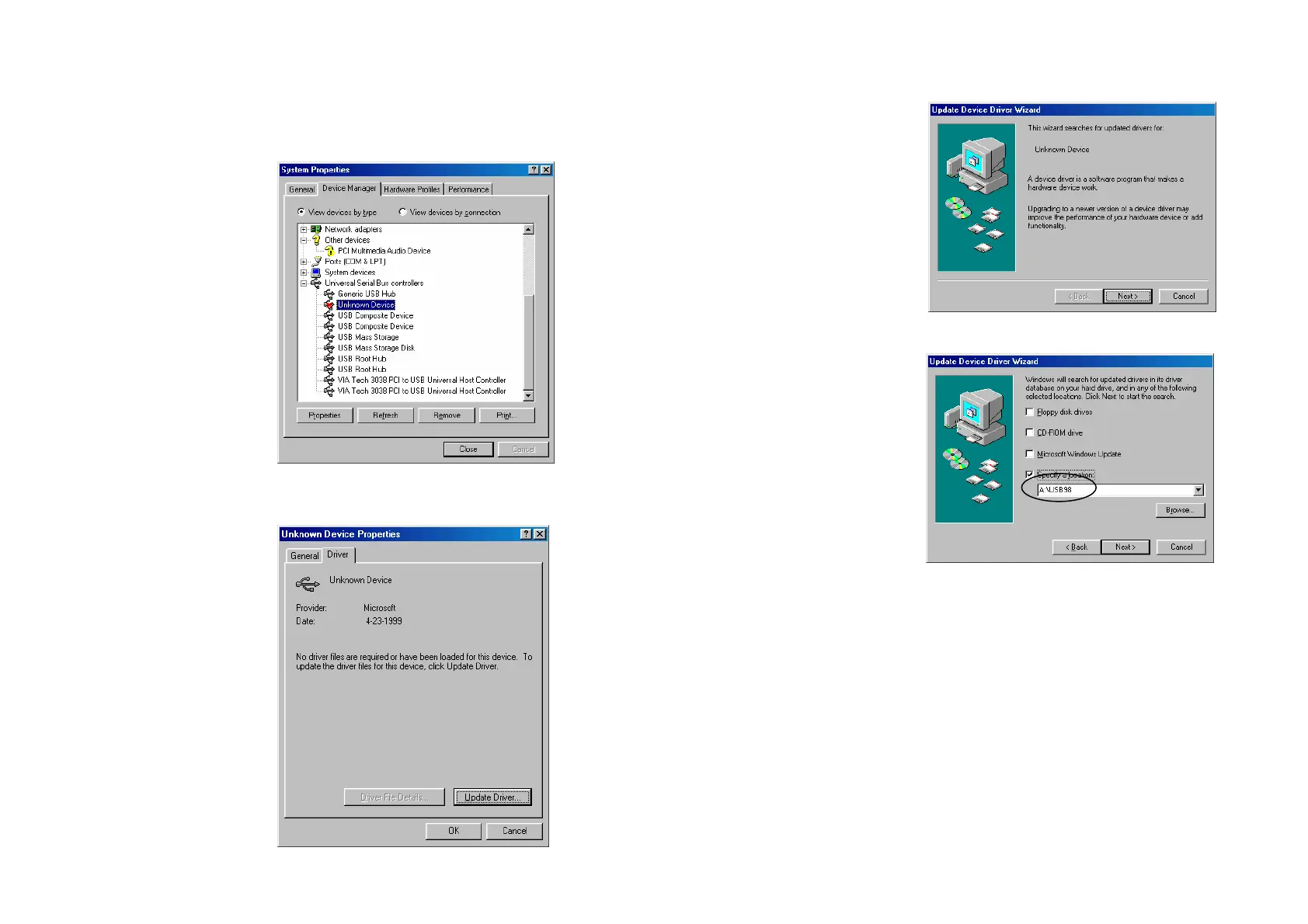 Installing USB Driver (Windows 98 only)