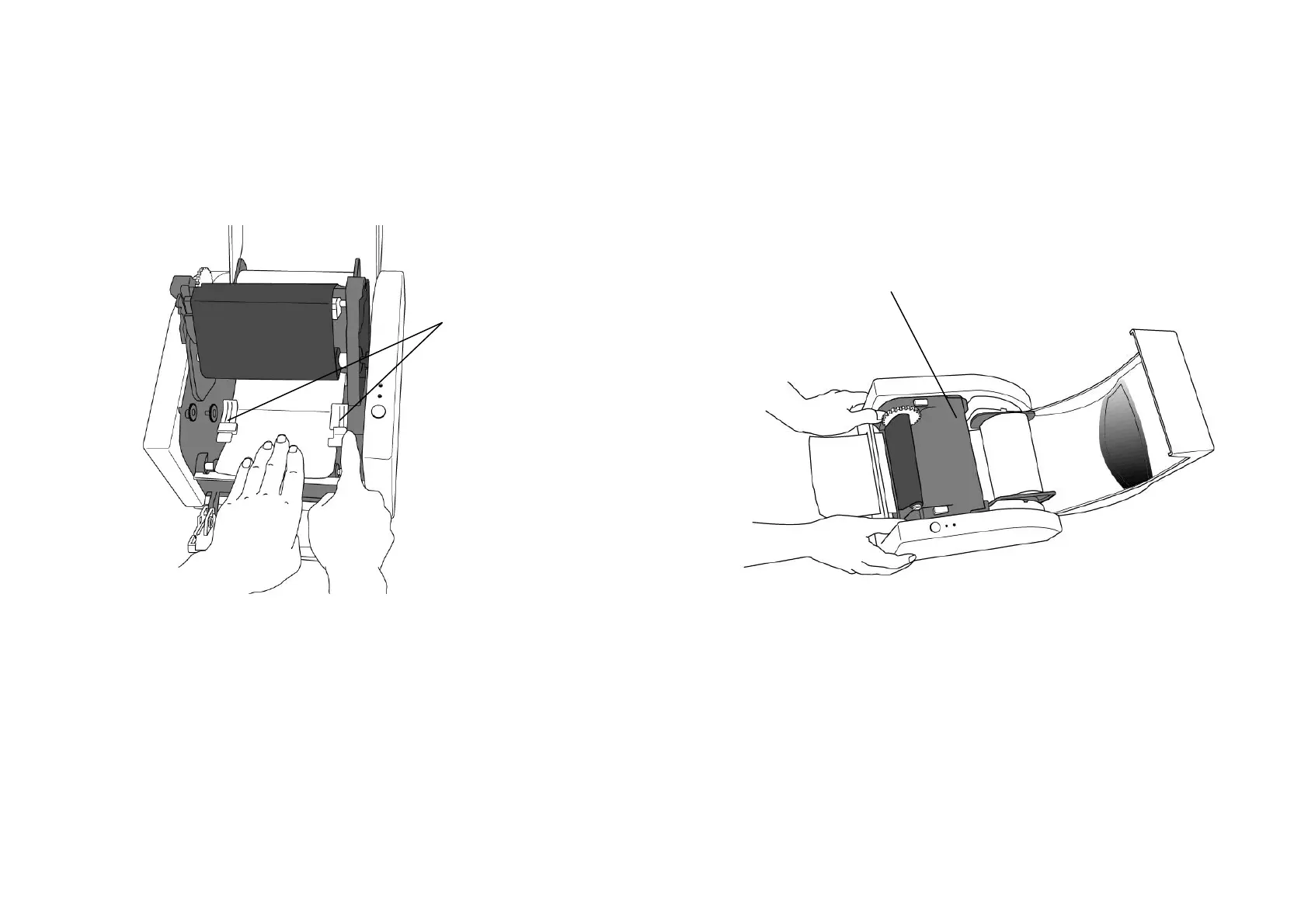 6. Lead the label through the media guides with the other hand.