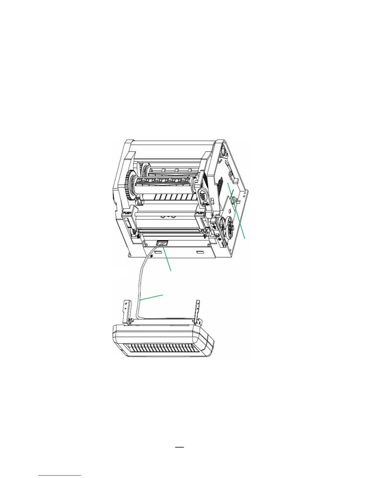 Cutter Cable should go though the hooks under Printer Chassis to