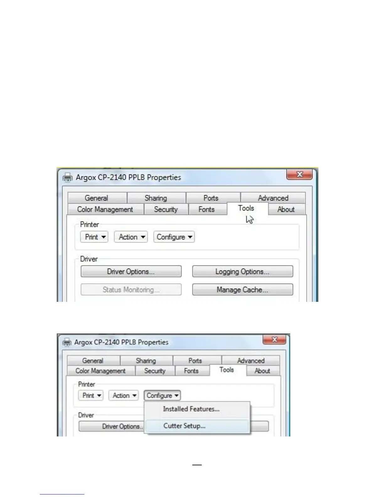 2. Click the “Configure” setting of driver, select “Cutter Setup”: