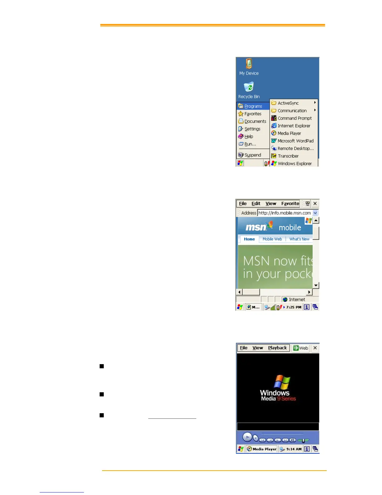 such as Internet Explorer, Media player,