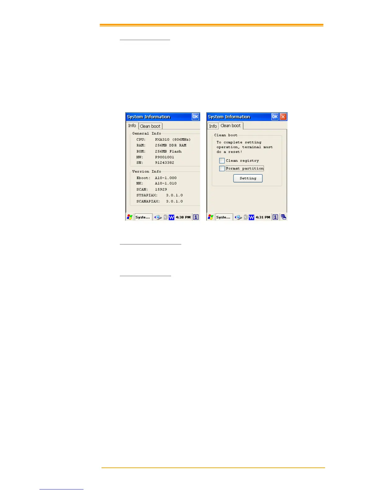 Clean boot page allow users to clean registry and format user partition.