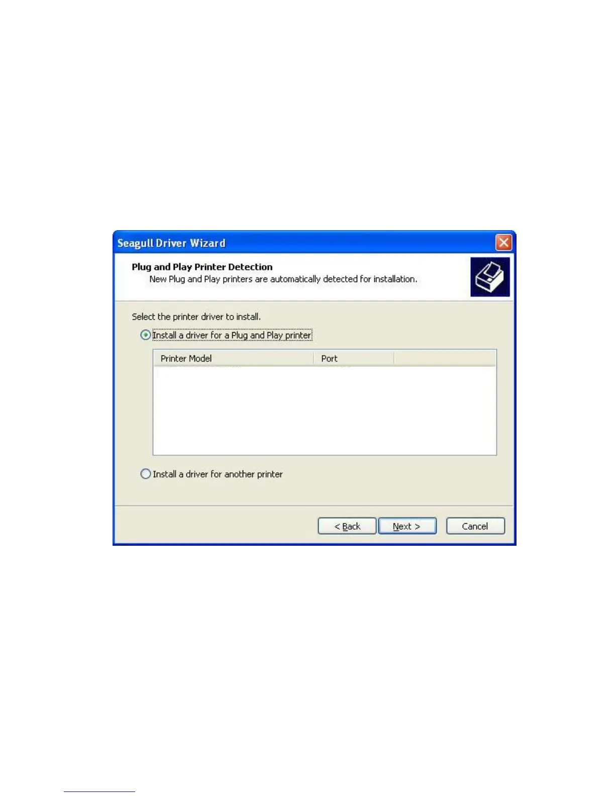 5. On the Seagull Driver Wizard prompt, select the first radio