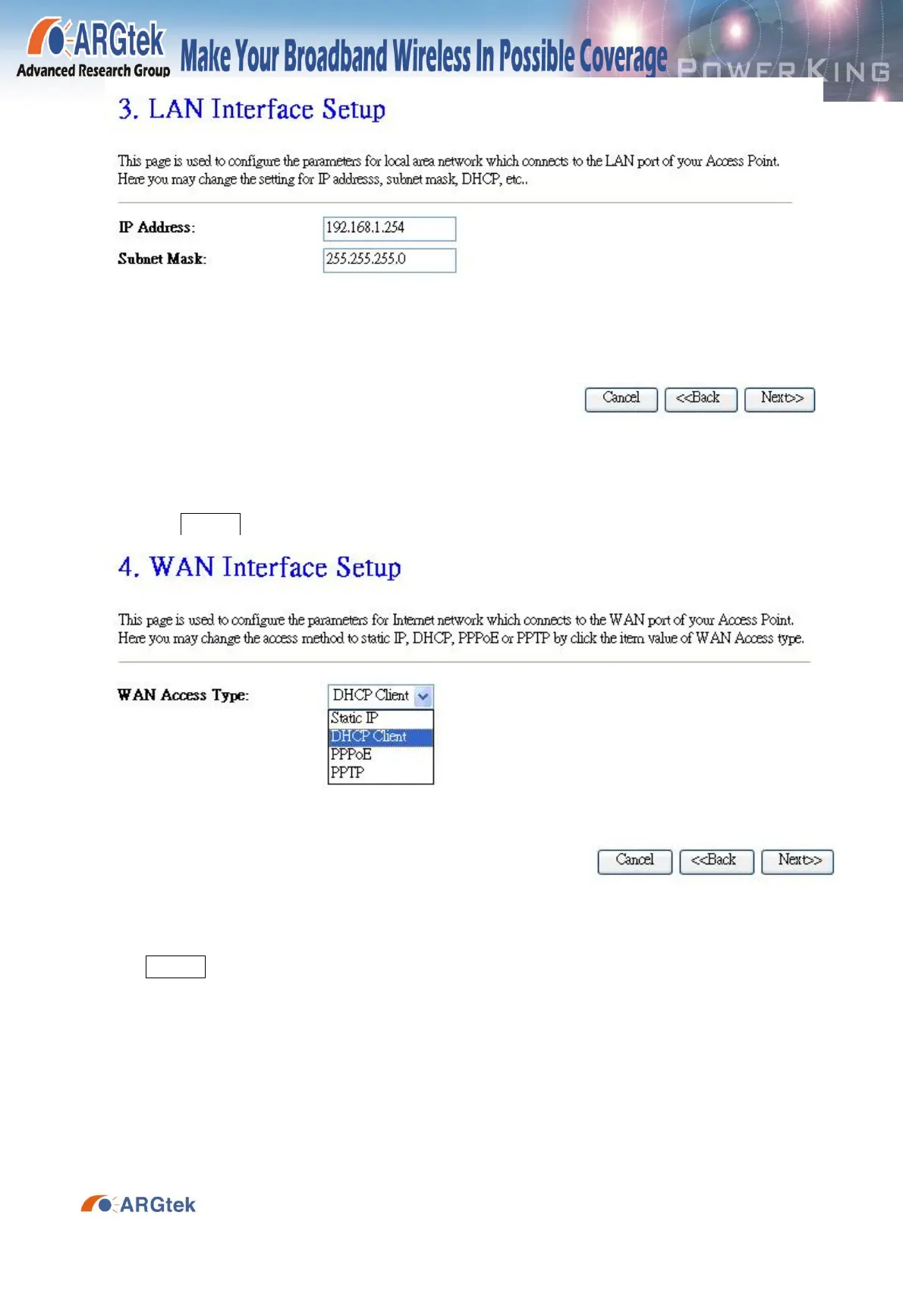 2-7. In WAN Interface Setup, select DHCP Client for your connection of WAN Access Type