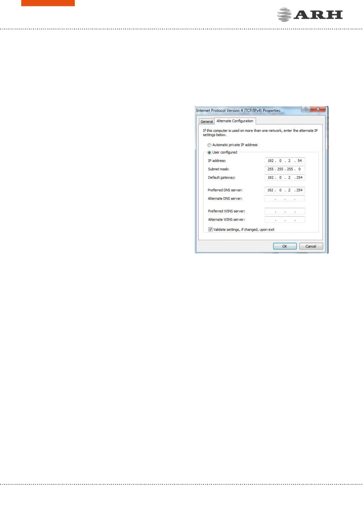 1. Select User configured and enter an IP address (e.g.:192.0.2.54). The Subnet mask should
