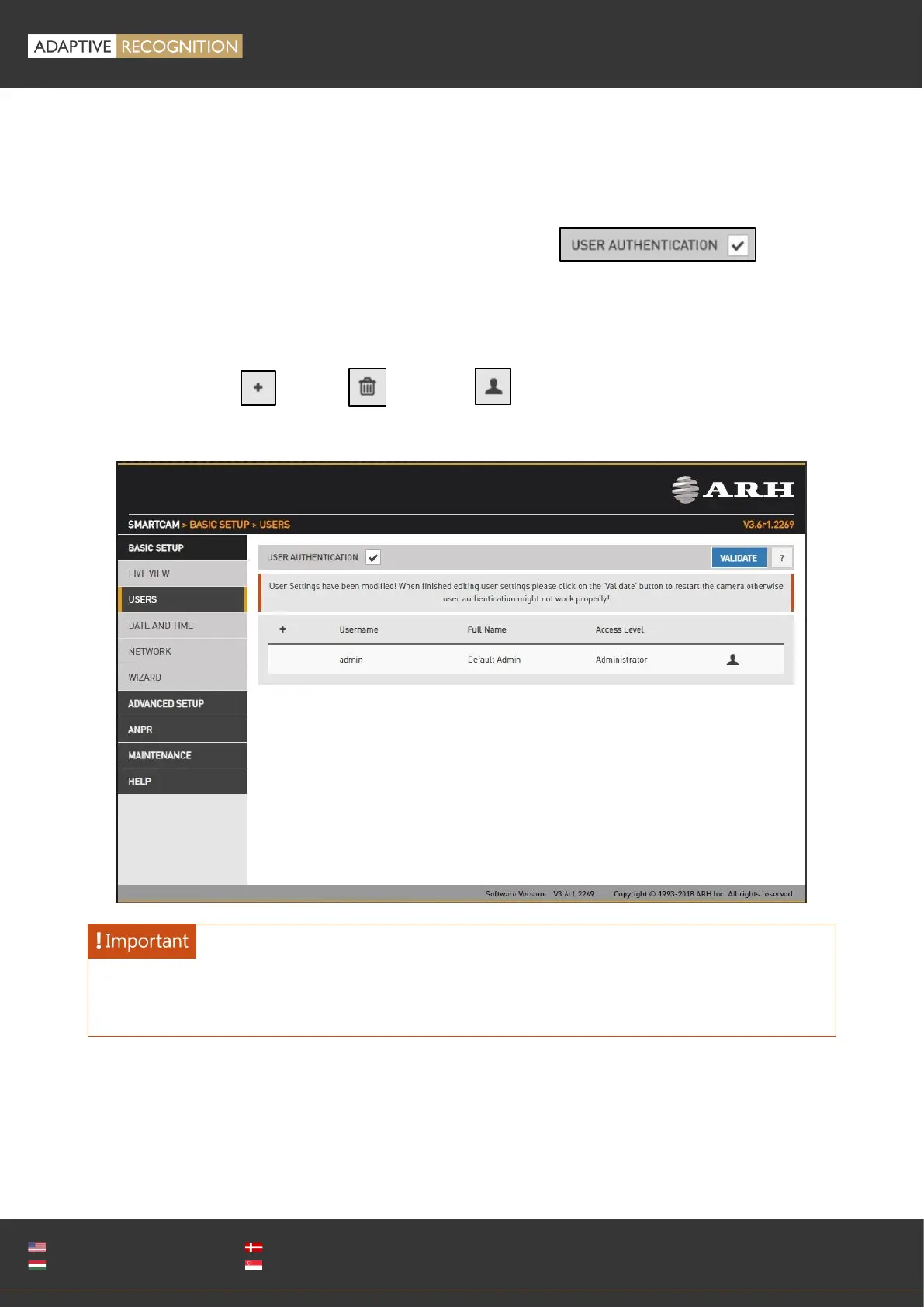 Adding a new user: On clicking the plus ('+') button a form appears requesting the following fields: