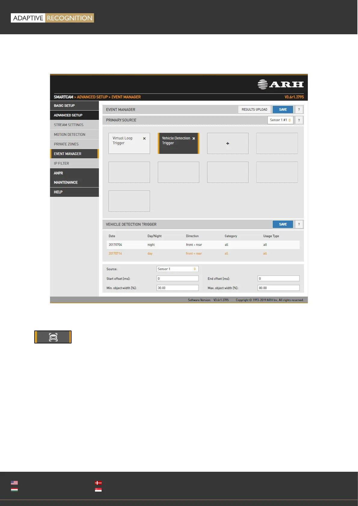descriptors will be shown with their date, mode (day or night), vehicle direction and category, and