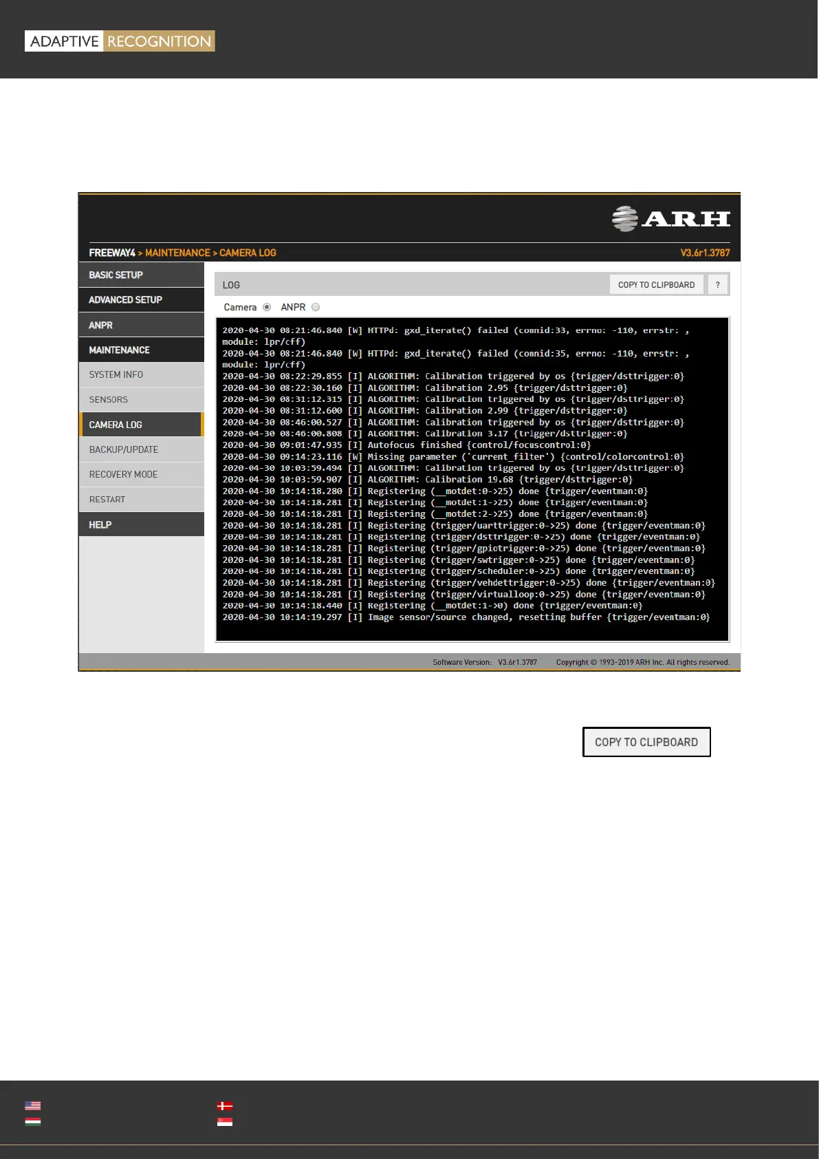 Camera and ANPR logs provide information about the processes in the camera and the license plate