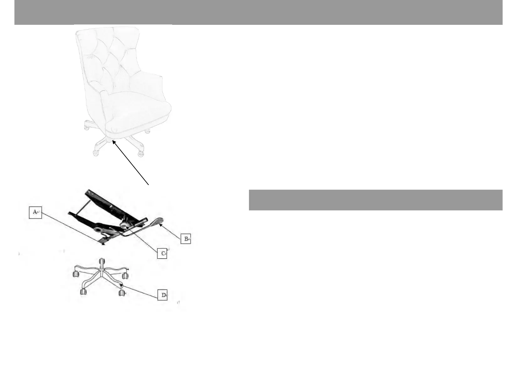 1.Please sit down onto the chair and use the left handle (A) to adjust the