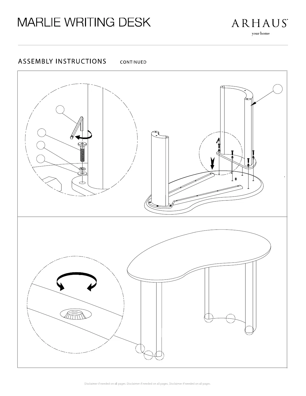 ATTACH THE BIG LEG TO THE LARGER END OF THE MARBLE TOP.