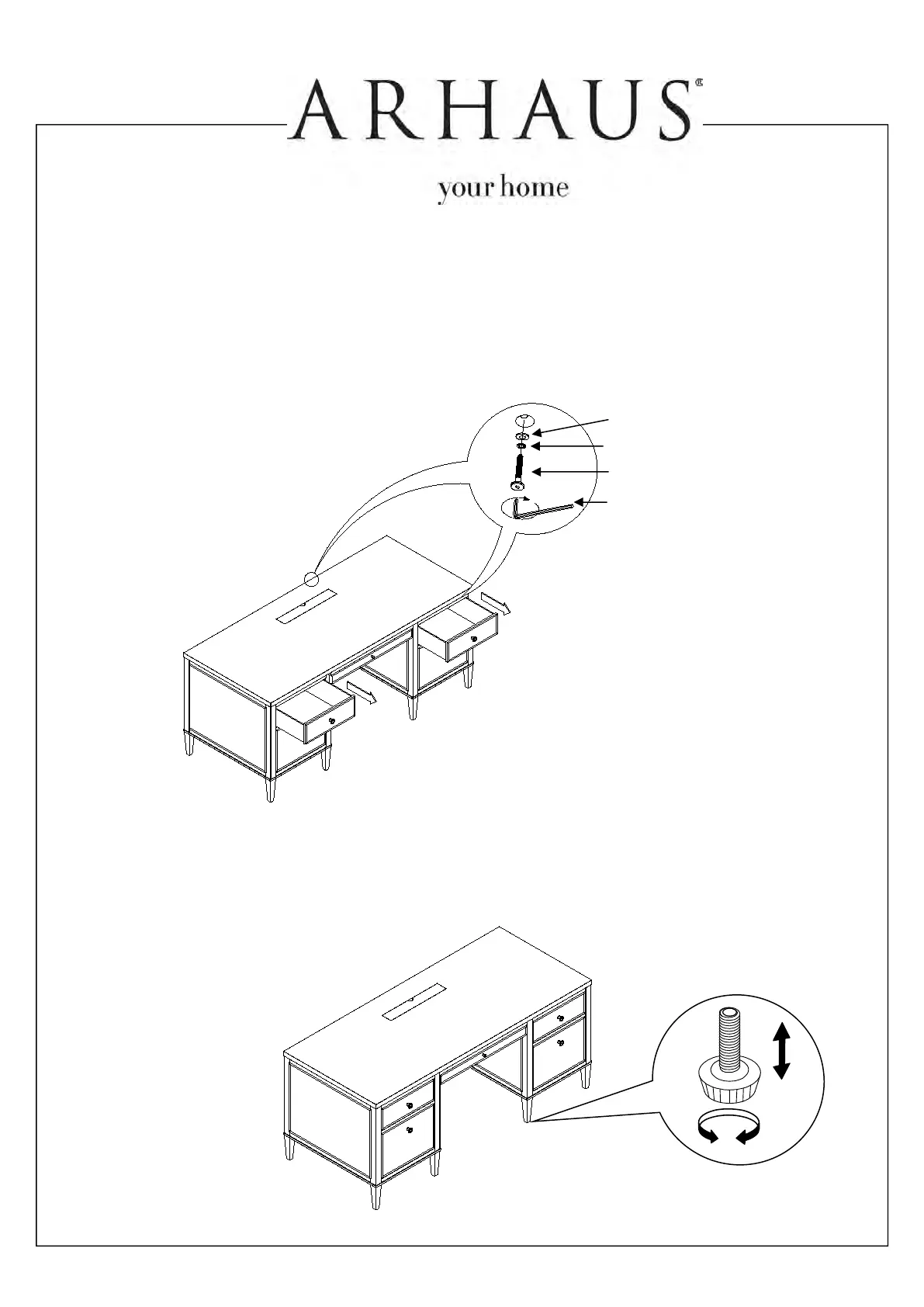 - If the Desk is uneven, adjust the levelers on the bottom of each leg by twisting them clockwise or