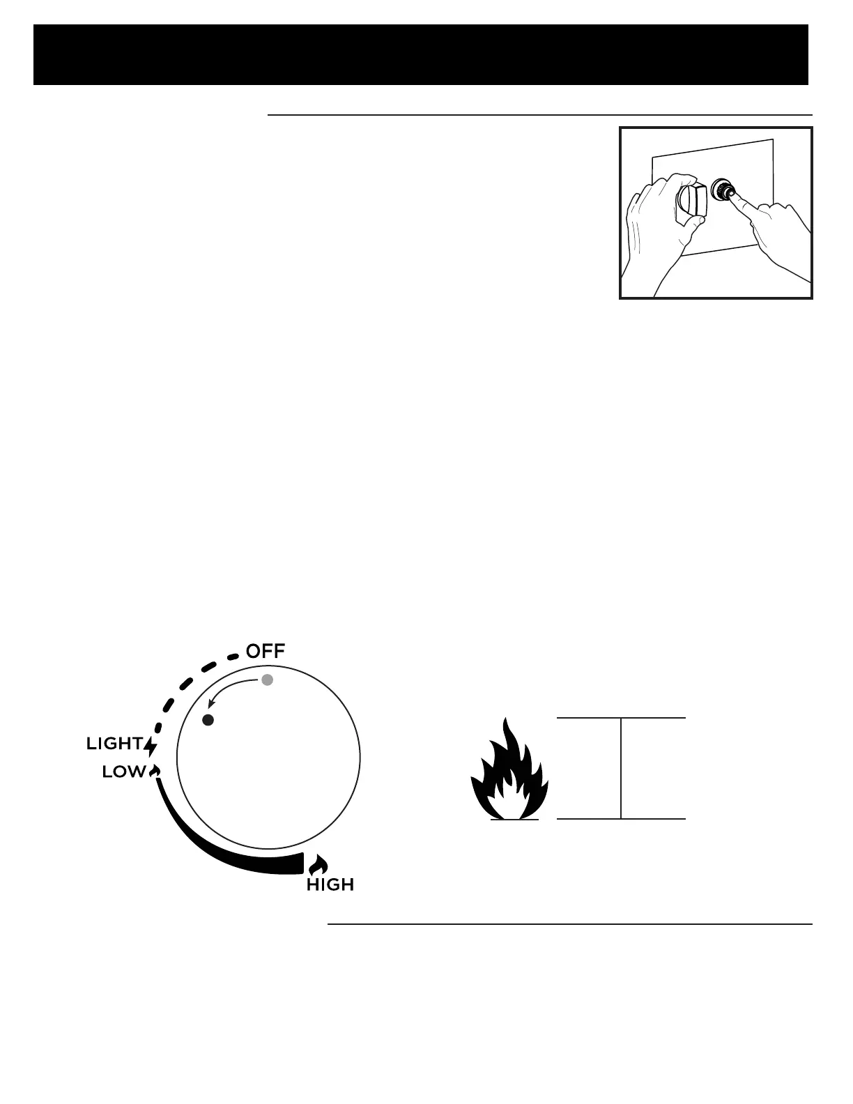 9. After successfully lighting the fireplace, release the control knob and turn it to the “LOW” setting.